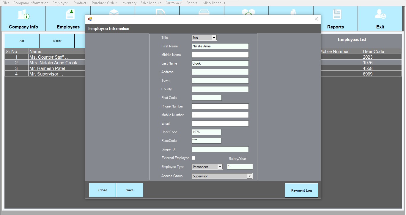 - Payment Log; will keep a record of each individual staff members then click after filling the details. To view the employee payment report you need to select the employee name to view the record.